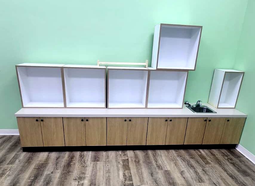 Practical cabinetry for employee kitchens and shared spaces.